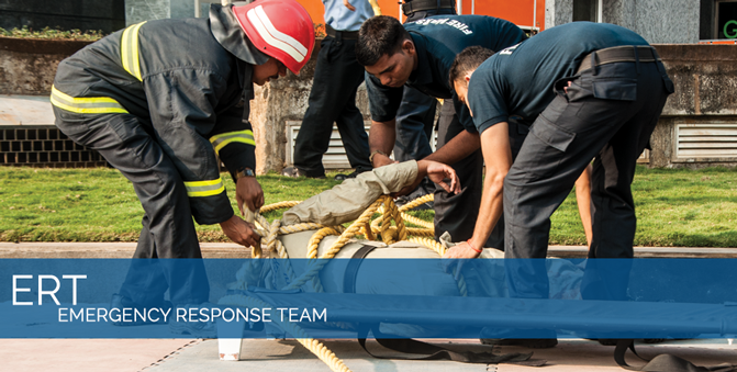 Ever ready for any emergency situation our ERT efficiently evacuate the premises without causing any panic amongst the people present there, provide first aid, carry out rescues and extinguish fire caused by accident or arson, co-ordinate with concerned authorities and execute many more such activities seamlessly.